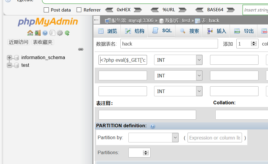 在网上看到一位大佬他是将webshell当做数据表的字段,这样是可以写入到数据库的文件中
