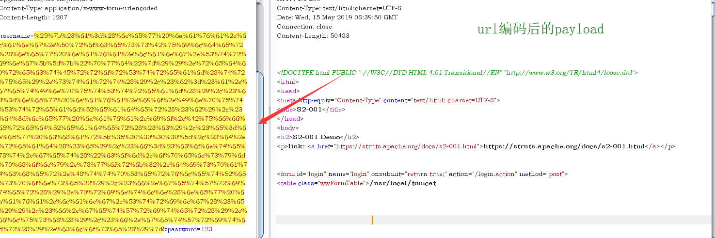 该漏洞因为用户提交表单数据并且验证失败时,后端会将用户之前提交的参数值使用 OGNL 表达式 %{value} 进行解析,然后重新填充到对应的表单数据中。例如注册或登录页面,提交失败后端一般会默认返回之前提交的数据,由于后端使用 %{value} 对提交的数据执行了一次 OGNL 表达式解析,所以可以直接构造 Payload 进行命令执行