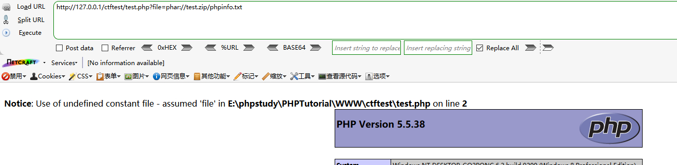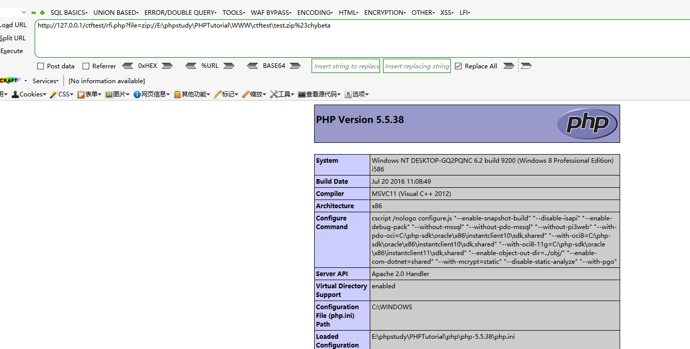 则拼接后为:zip://D:\phpStudy\WWW\fileinclude\chybeta.zip#chybeta/test/test.php