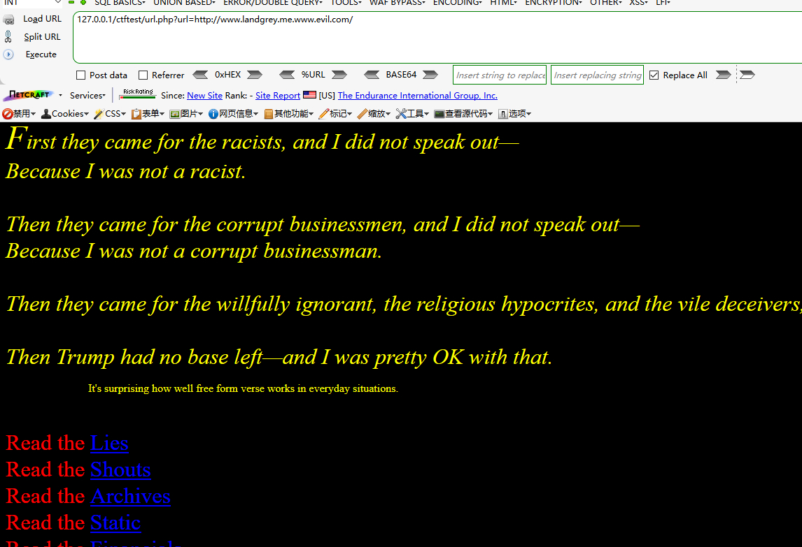 https://www.landgrey.me/redirect.php?url=.evil.com (可能会跳转到evil.com域名)